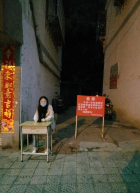 在疫情防控第一線,沒有誰是旁觀者。2020年2月9號(hào)~10號(hào)16檢驗(yàn)501班黃旭雯同學(xué)在福建省三明市建寧縣下坊街加入當(dāng)?shù)氐闹驹刚叻?wù),主要內(nèi)容是阻止外來車輛和外來人員并做好登記,給要外出人員發(fā)放小區(qū)出入證。負(fù)責(zé)對(duì)進(jìn)出人員進(jìn)行詢問和勸解,查驗(yàn)他們進(jìn)出時(shí)是否持有“出門證”,若沒有就按規(guī)定辦理。按規(guī)定,除復(fù)工上班人員持證進(jìn)出外,每戶每?jī)商熘荒芘梢蝗顺鲩T采購生活必需品,其他人員盡量減少出門。“阿姨,您有出門證嗎?沒有的話就不能出去!您若沒辦出門證,請(qǐng)?jiān)谶@里登記一下!”一位50多歲的阿姨想出門溜達(dá),被志愿者攔了下來。