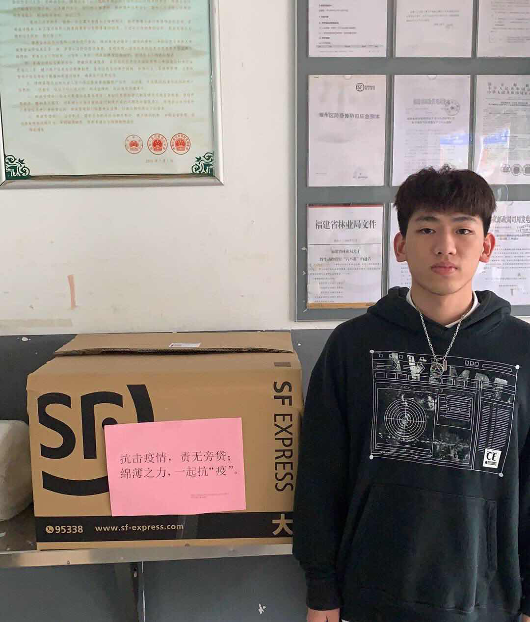 3月9號,福建衛(wèi)生職業(yè)技術(shù)學(xué)院的門診部收到了一份快遞,打開層層的包裹,里頭是1500個口罩。