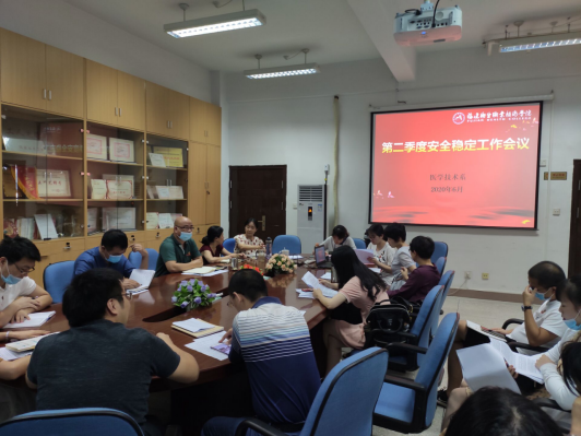 6月18日下午,醫(yī)學技術系在系部會議室召開2020年第二季度安全穩(wěn)定工作會議。會議由我系黨總支負責人邱滾忠同志主持,翁繩和主任、魏碧娜副主任、黨總支委員、各支部書記、各教研室主任、實訓中心主任、辦公室主任、輔導員參加此次會議。