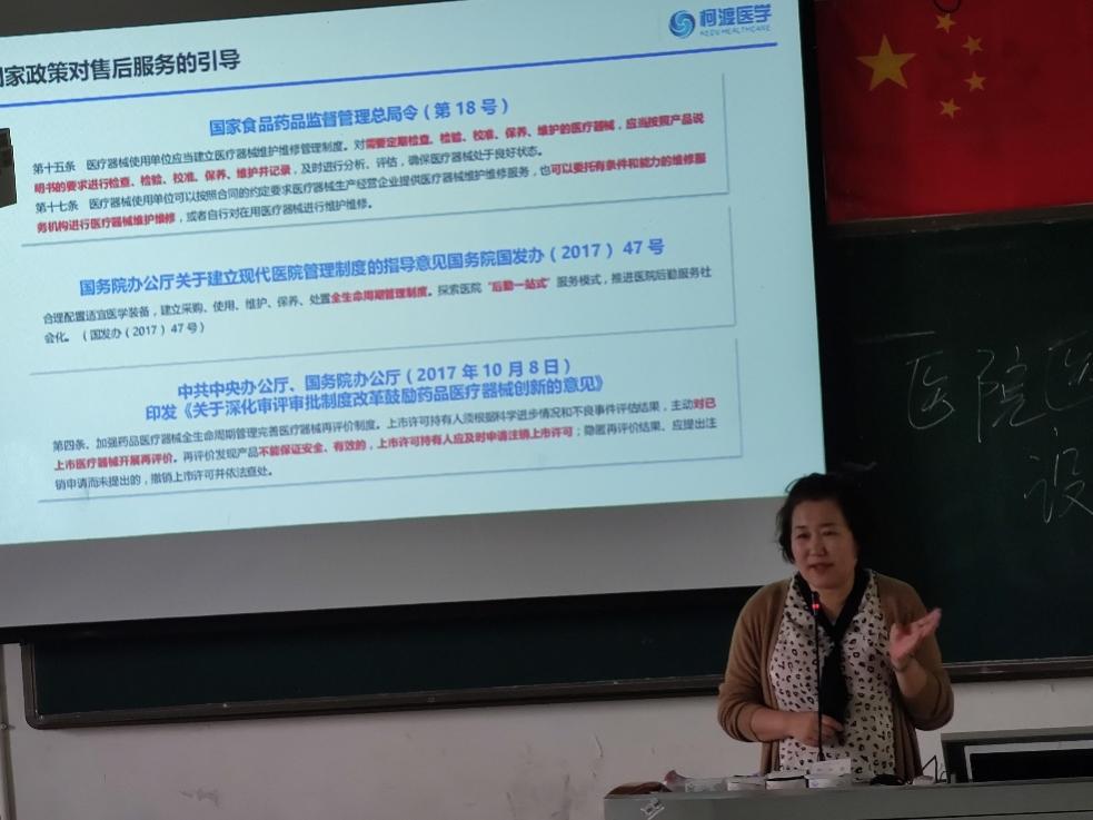 姜穎經(jīng)理圍繞講座主題,介紹了醫(yī)療設(shè)備領(lǐng)域的新進(jìn)展、新特點(diǎn),并詳細(xì)地分析我國醫(yī)院設(shè)備科管理面臨的現(xiàn)況與挑戰(zhàn)。同時結(jié)合自身研究領(lǐng),講解了國家政策對醫(yī)療設(shè)備售后服務(wù)的綜合措施以及醫(yī)療設(shè)備應(yīng)用技術(shù)專業(yè)人才在醫(yī)院設(shè)備管理中的作用與意義。同時,介紹了國內(nèi)包括影像、超聲、生命支持、內(nèi)窺鏡、檢驗(yàn)、血透等科室等80多個國內(nèi)國際設(shè)備廠商的情況。