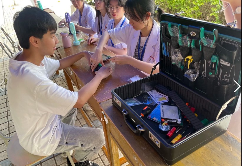 開展小型電器義務(wù)維修及電腦故障排除。5月20日在學(xué)院明湖餐廳門口開展小型電器義務(wù)維修及電腦故障排除活動,活動吸引了校內(nèi)同學(xué)駐足觀看,參與解決維修或者故障答疑的同學(xué)在本次活動中能力得到了提升。普及了小型家用電器維護(hù)保養(yǎng)與維修的常識和意義,提高學(xué)生利用專業(yè)知識踐行為師生服務(wù)的認(rèn)同感,踐行醫(yī)學(xué)生奉獻(xiàn)精神和職教精神。