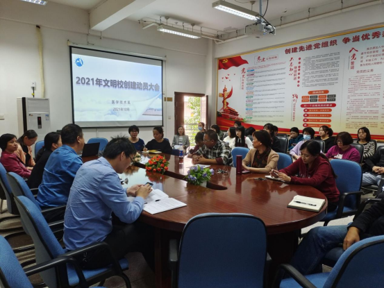 2021年10月28日中午,我系召開(kāi)2021年文明校園創(chuàng)建工作動(dòng)員大會(huì),全系教職員工參加,會(huì)議由醫(yī)學(xué)技術(shù)系黨總支書記陳俊穎同志主持并做動(dòng)員講話。