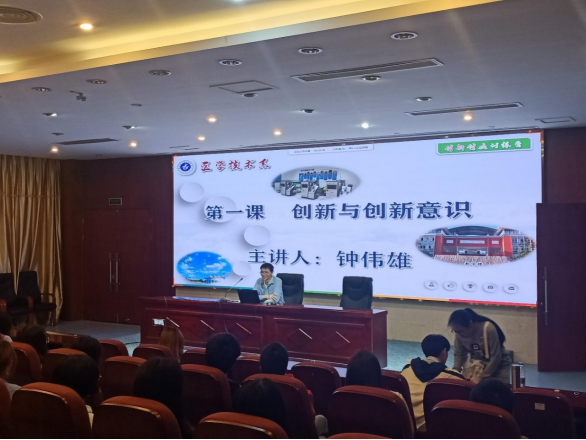開班儀式上,醫(yī)學(xué)技術(shù)系第二黨支部鐘偉雄老師用生動形象的案例和樸實真切的語言與在座的同學(xué)們描繪創(chuàng)新及創(chuàng)新意識的藍(lán)圖。鼓勵同學(xué)不畏困難,勇于創(chuàng)新。