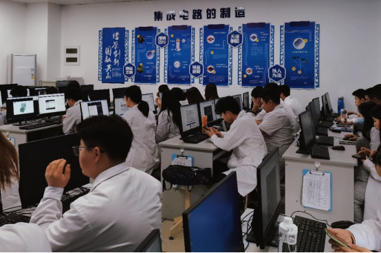2021年11月7日上午,“1+X集成電路開發(fā)與測試(中級)培訓(xùn)講師”潘清良老師給同學(xué)們帶來“1+X 集成電路開發(fā)與測試”第二次課。首先,老師先用一個視頻——“從沙子到芯片的制作過程”導(dǎo)入今天的課程。這次課主要講《晶圓制造》,它分為三部分:1.集成電路制造基本流程、2.單晶硅片制備、3.薄膜制備、4.光刻、5.刻蝕、6.摻雜。下午,潘清良老師帶領(lǐng)學(xué)生們來到醫(yī)技樓202進行實訓(xùn)。通過現(xiàn)場講授、PPT講解、AI虛擬仿真、學(xué)習(xí)通考核等形式,針對性培訓(xùn)學(xué)員的理論能力和實踐、教學(xué)能力,加強集成電路專業(yè)知識,促進院校集成電路相關(guān)專業(yè)的建設(shè)進程,培育學(xué)員對“1+ X集成電路”的興趣。