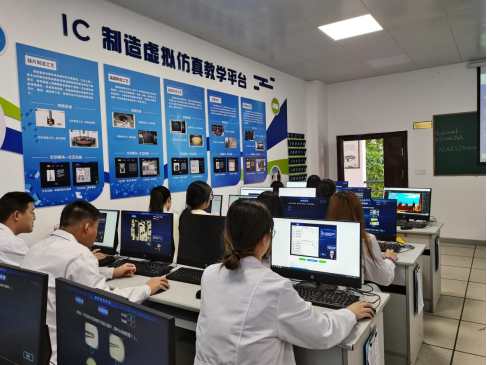 在上午的理論課上,陳文山老師用專業(yè)的知識引例集成電路封裝的典型工藝操作,深入講解工藝質量評估、設備故障類型判別及設備維護等。下午,陳文山老師帶領學員們進行集成電路封裝的虛擬仿真實訓課,本次實訓課全程采用參與試教學方法和直觀的學習體驗,強化以學生為中心的教學模式,虛擬仿真實訓利用語音、圖片、動畫、視頻以及虛擬交互等表現形式,展現集成電路封裝工藝流程、設備等操作過程,實現線上知識點學習以及單元考核測評,通過場景化體驗,多維的情景教學,以實代虛、以虛助實,為學員們打下堅實的基礎。