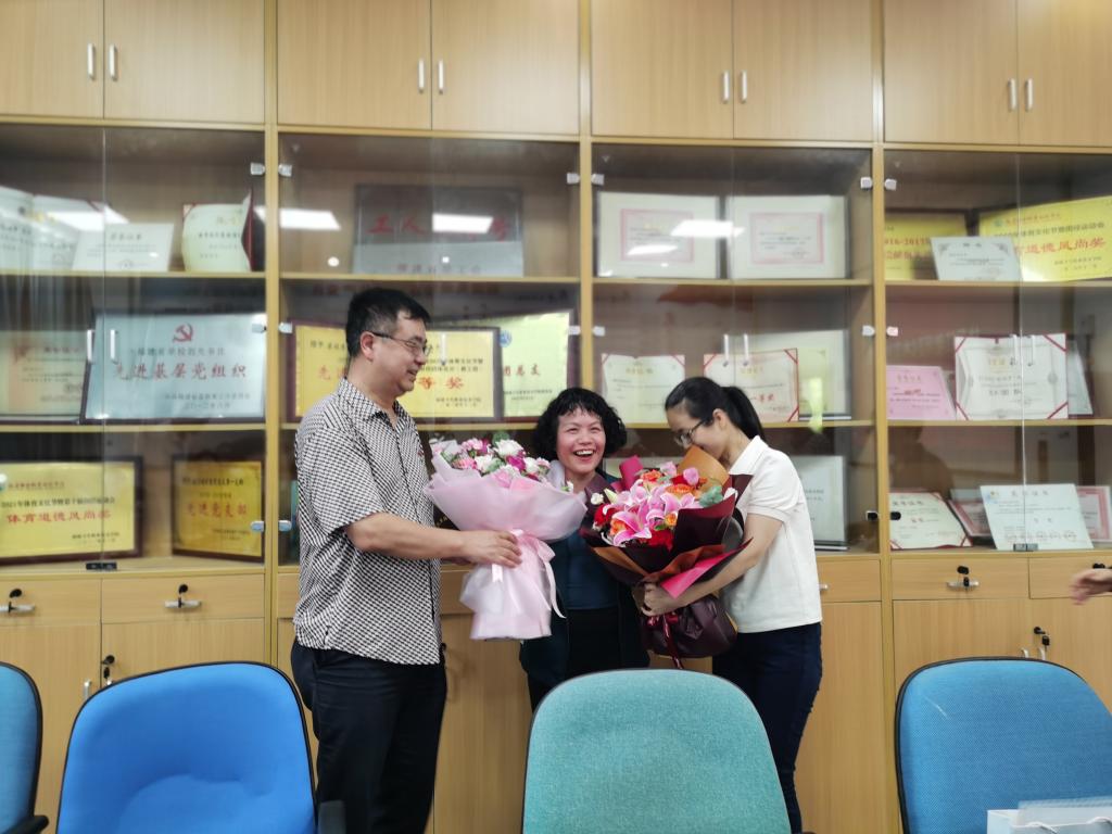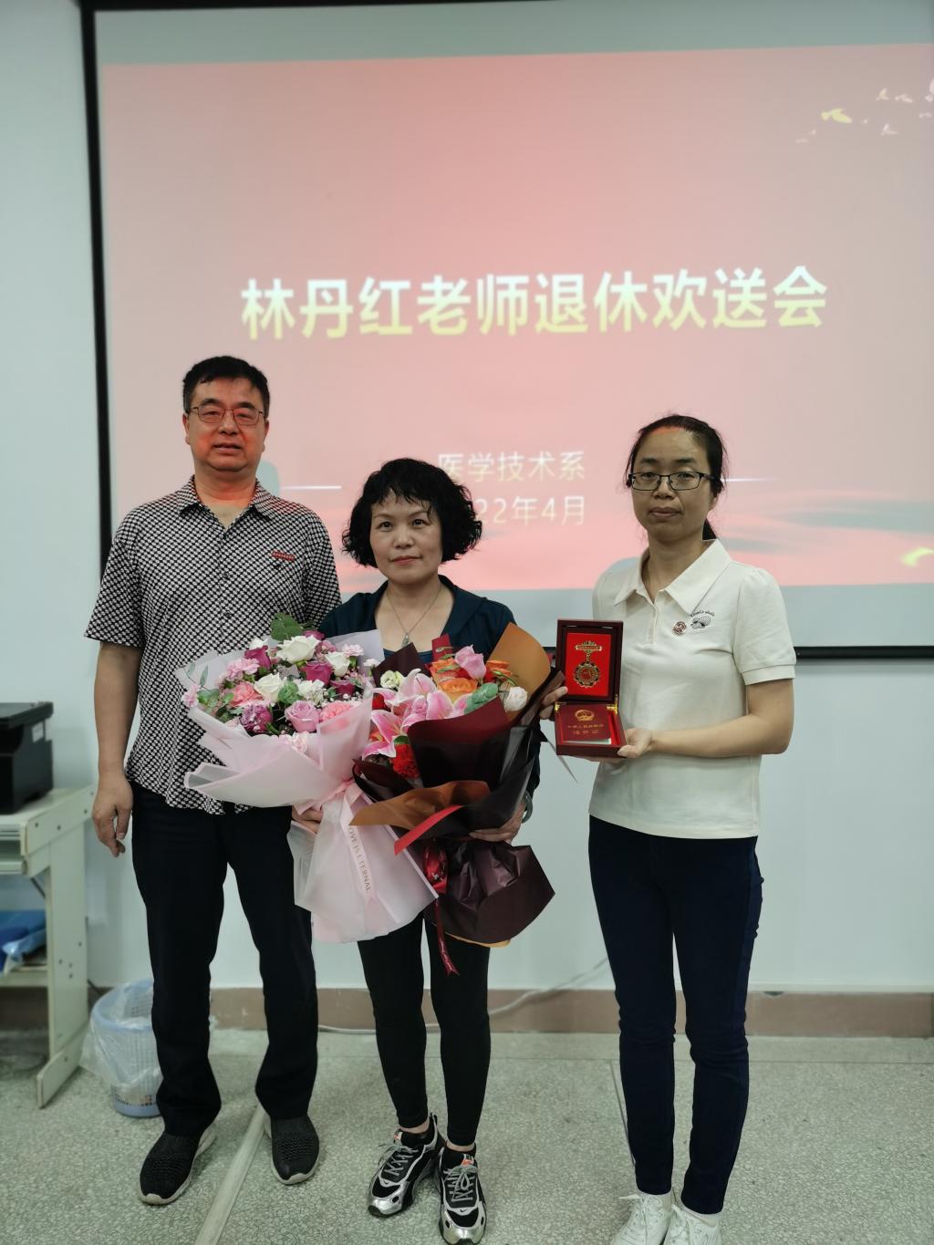 歡送會上,醫(yī)學(xué)技術(shù)系黨總支書記柯瓊鶯對林丹紅老師33年從教生涯做了介紹,感謝她對學(xué)校、系部做出的貢獻(xiàn),并送上美好祝福。系主任翁繩和與人事處離退休干部工作科科長黃惠麗為林丹紅老師獻(xiàn)上鮮花、退休證和光榮退休紀(jì)念章。