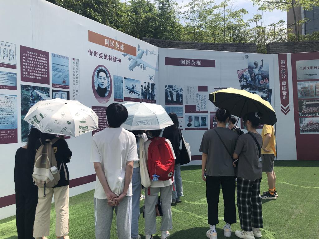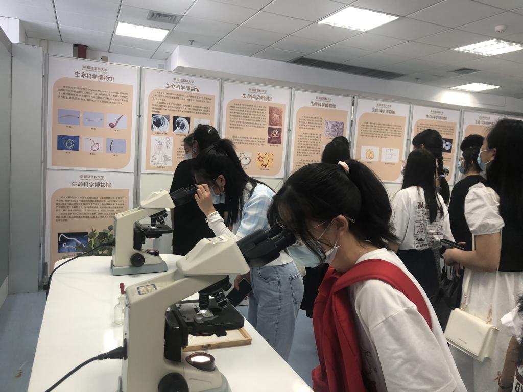 同學(xué)們懷著激動(dòng)的心情登車充滿期待,當(dāng)大巴車駛?cè)敫at(yī)校園,同學(xué)們不約而同地隔著車窗四處觀望,興奮之情溢于言表。師生走進(jìn)校史館,認(rèn)真聆聽講解員介紹福建醫(yī)科大學(xué)的辦學(xué)脈絡(luò),共同緬懷前人的拓荒精神;在“同心抗疫,愛國(guó)力行”抗疫主題宣傳館,學(xué)習(xí)感受福醫(yī)人沖鋒在前和勇于擔(dān)當(dāng)?shù)目挂呔?,館內(nèi)陳列的抗疫紀(jì)念冊(cè)引起同學(xué)們的關(guān)注,大家紛紛翻閱學(xué)習(xí)起來(lái);參觀“紅色閩醫(yī)展”時(shí),被紅醫(yī)們堅(jiān)忍不拔、奮發(fā)進(jìn)取、鞠躬盡瘁的革命精神以及百折不撓、愈挫愈奮、奮發(fā)圖強(qiáng)的堅(jiān)強(qiáng)意志深深感染。師生們放慢腳步輕聲進(jìn)入圖書館,從福醫(yī)認(rèn)真自習(xí)同學(xué)們的身影中,體會(huì)到學(xué)醫(yī)之路唯有“書山有路勤為徑,學(xué)海無(wú)涯苦作舟”的學(xué)習(xí)氛圍。在生命科學(xué)博物館,同學(xué)們跟隨講解員,認(rèn)真聆聽、好奇地觀摩各類珍貴的館藏標(biāo)本。