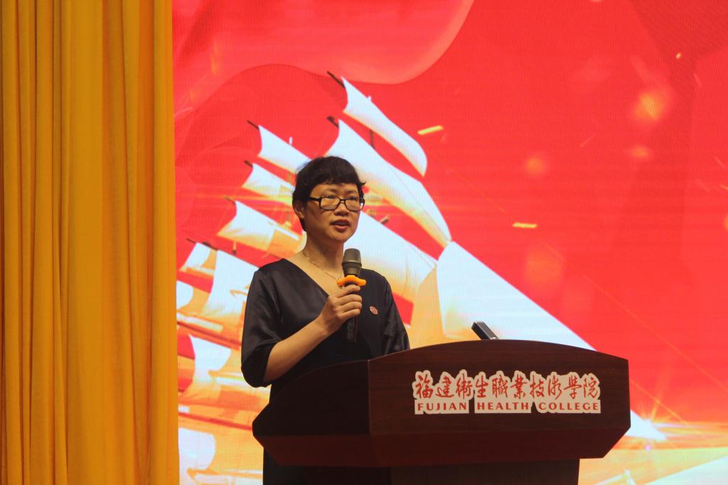 醫(yī)學(xué)技術(shù)系臨床檢驗教研室主任何旭春副教授作為教師代表發(fā)言,她希望畢業(yè)生們在社會大學(xué)里,完成從醫(yī)學(xué)生向醫(yī)務(wù)工作者的轉(zhuǎn)換,迎接新的考驗和挑戰(zhàn)。
