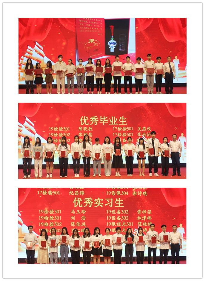 許能鋒校長為畢業(yè)生代表頒發(fā)畢業(yè)證書和畢業(yè)紀(jì)念品。曾武祈書記為優(yōu)秀畢業(yè)生、優(yōu)秀實習(xí)生頒發(fā)榮譽證書。