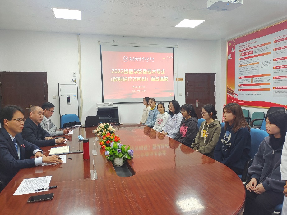 經(jīng)過兩個小時的面試,結合學生的在校成績及面試成績,最后從中擇優(yōu)挑選32名學生,這些學生將于2022-2023學年的第二學期組成22放療301班,并按照放療方向的專業(yè)教學計劃進行學習。