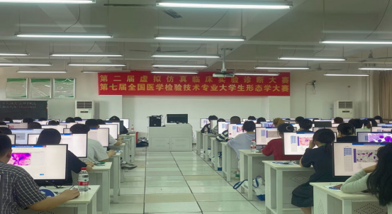 形態(tài)學(xué)比賽包括臨床檢驗形態(tài)涂片(形態(tài)識別模塊)和骨髓涂片血細(xì)胞分類計數(shù)(數(shù)字切片模塊)兩個項目,考核學(xué)生對外周血細(xì)胞、骨髓細(xì)胞、各種體液有形成份、微生物以及寄生蟲等形態(tài)的掌握情況。虛擬仿真臨床實驗診斷大賽由理論考核、虛擬仿真實驗和臨床思維診斷三個模塊組成,其中理論考核模塊重點考查全國初中級衛(wèi)生專業(yè)技術(shù)資格考試考點,虛擬仿真實驗和臨床思維診斷模塊側(cè)重考查臨床實操和臨床思維能力。