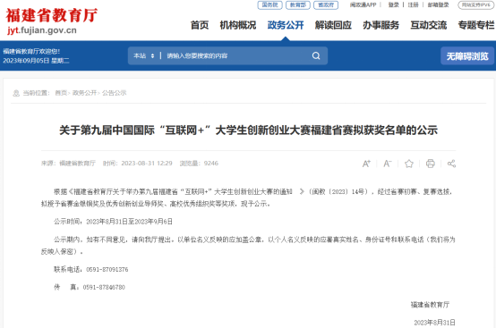 第九屆福建省“互聯(lián)網(wǎng)+”大學生創(chuàng)新創(chuàng)業(yè)大賽由福建省教育廳、福建省委統(tǒng)戰(zhàn)部、福建省委網(wǎng)信辦、福建省發(fā)改委、福建省工信廳、福建省人社廳、福建省農(nóng)業(yè)農(nóng)村廳、福建省市場監(jiān)管局(福建省知識產(chǎn)權(quán)局)、共青團福建省委、福建省科協(xié)、福建省中華職教社等部門共同主辦,福州大學、黎明職業(yè)大學分別承辦,福建教育電視臺、福建省創(chuàng)新創(chuàng)業(yè)創(chuàng)造教育指導委員會等單位參與協(xié)辦。據(jù)悉,本屆大賽共吸引了全省247所學校的85萬名師生,近22.3萬個項目報名參賽,參賽人數(shù)、項目數(shù)均創(chuàng)歷史新高。