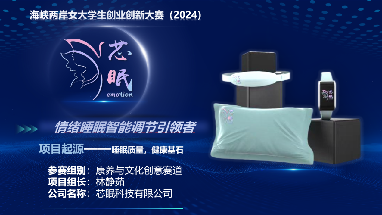 2024年8月14日,由共福建省婦女聯(lián)合會、福建省教育廳、福建省人力資源和社會保障廳、福建省科學(xué)技術(shù)廳聯(lián)合主辦的2024年海峽兩岸女大學(xué)生創(chuàng)新創(chuàng)業(yè)大賽決賽結(jié)果發(fā)布。本次大賽吸引了北京大學(xué)、廈門大學(xué)、福州大學(xué)等95所高校3916個(gè)項(xiàng)目參賽。我校報(bào)送的作品《芯眠--情緒睡眠智能調(diào)節(jié)引領(lǐng)者》獲得銅獎。