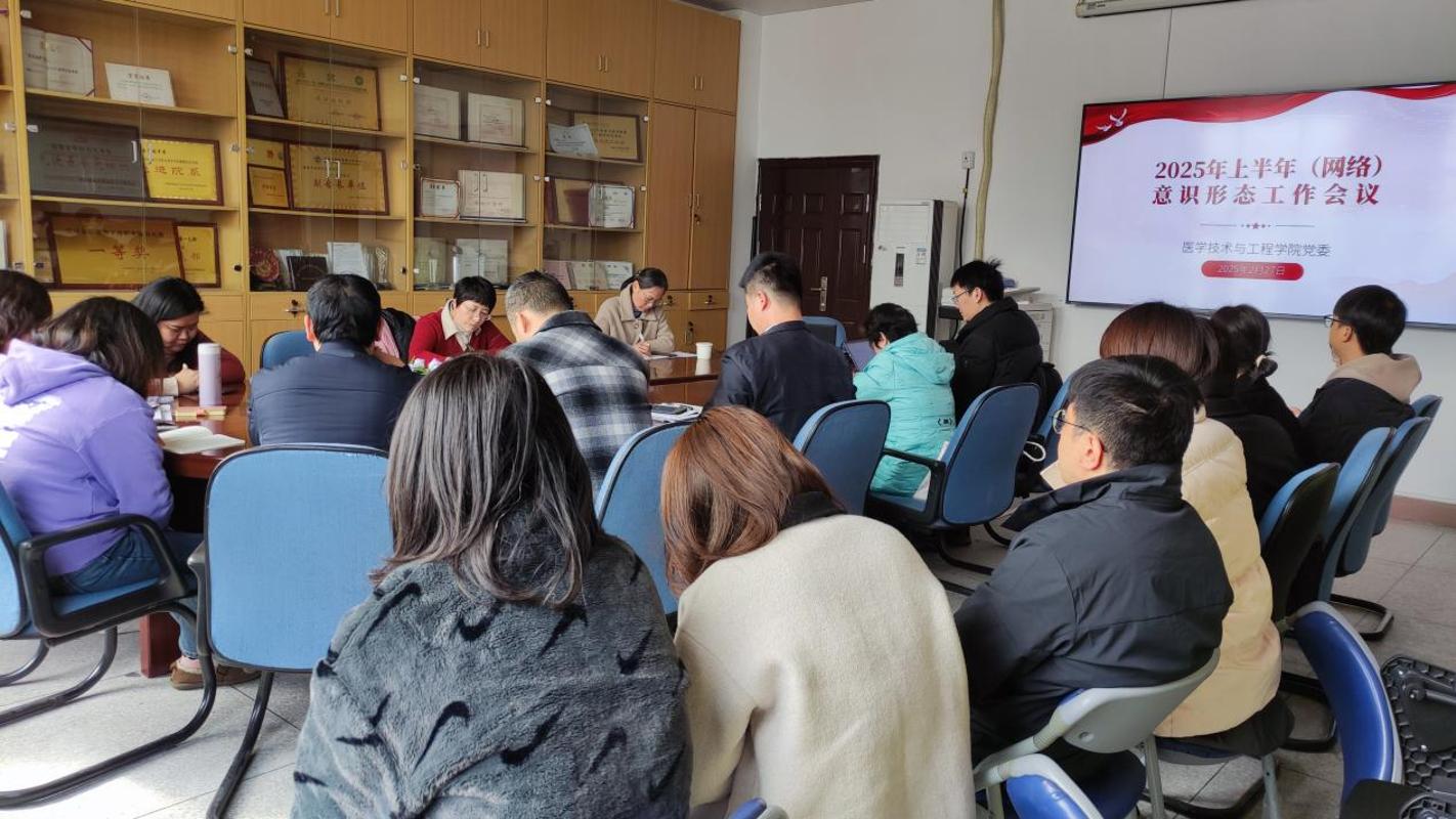 2月27日,醫(yī)學技術(shù)與工程學院召開2025年上半年(網(wǎng)絡)意識形態(tài)工作會議。會議由學院黨委書記柯瓊鶯主持,學院意識形態(tài)工作領導小組及辦公室成員等參加會議。