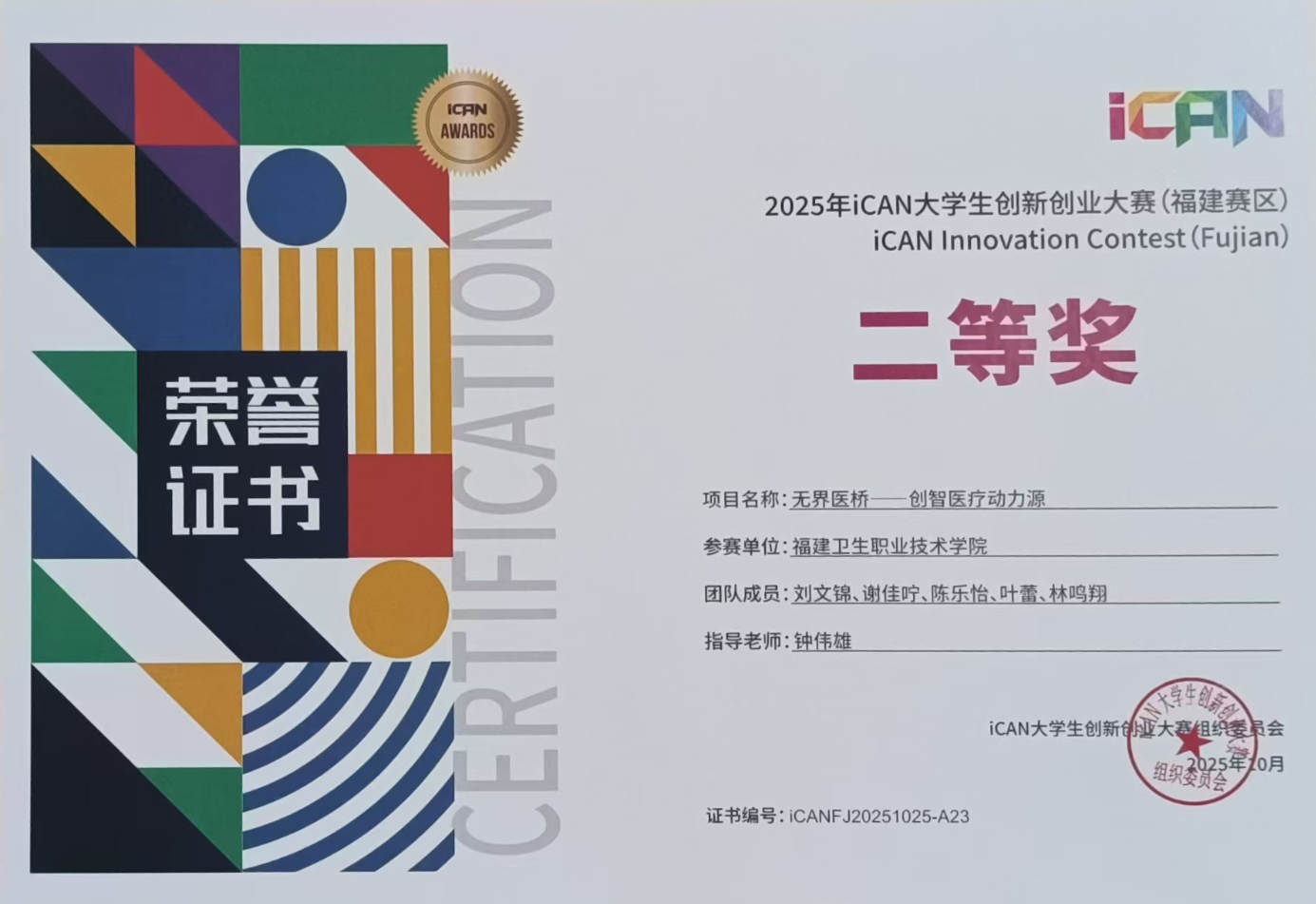 2025年10月25日,第十九屆iCAN大學(xué)生創(chuàng)新創(chuàng)業(yè)大賽福建賽區(qū)選拔賽在知行嶺·文旅科技產(chǎn)教融合(廈門)基地圓滿落幕。我校報送的《無界醫(yī)橋--創(chuàng)智醫(yī)療動力源》項目獲得二等獎、《聆芯-優(yōu)質(zhì)睡眠調(diào)節(jié)引領(lǐng)者》項目獲得二等獎。這是我校在該項賽事上取得的新突破。