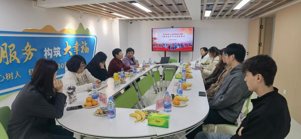 會后,召開了2025級少數(shù)民族學(xué)生代表座談會。學(xué)院黨委班子成員與關(guān)工委委員鄭韻芳老師共同參會,與來自各少數(shù)民族的學(xué)生代表親切交流。座談會上,同學(xué)們積極發(fā)言,分享了進(jìn)入大學(xué)后的學(xué)習(xí)與生活感受。大家普遍表示已基本適應(yīng)校園環(huán)境,班級和宿舍氛圍融洽和睦。同時,部分同學(xué)也反映了在普通話聽說、英語與高等數(shù)學(xué)等課程學(xué)習(xí)、專業(yè)知識的深入理解以及社團(tuán)活動參與等方面存在的實(shí)際困難。