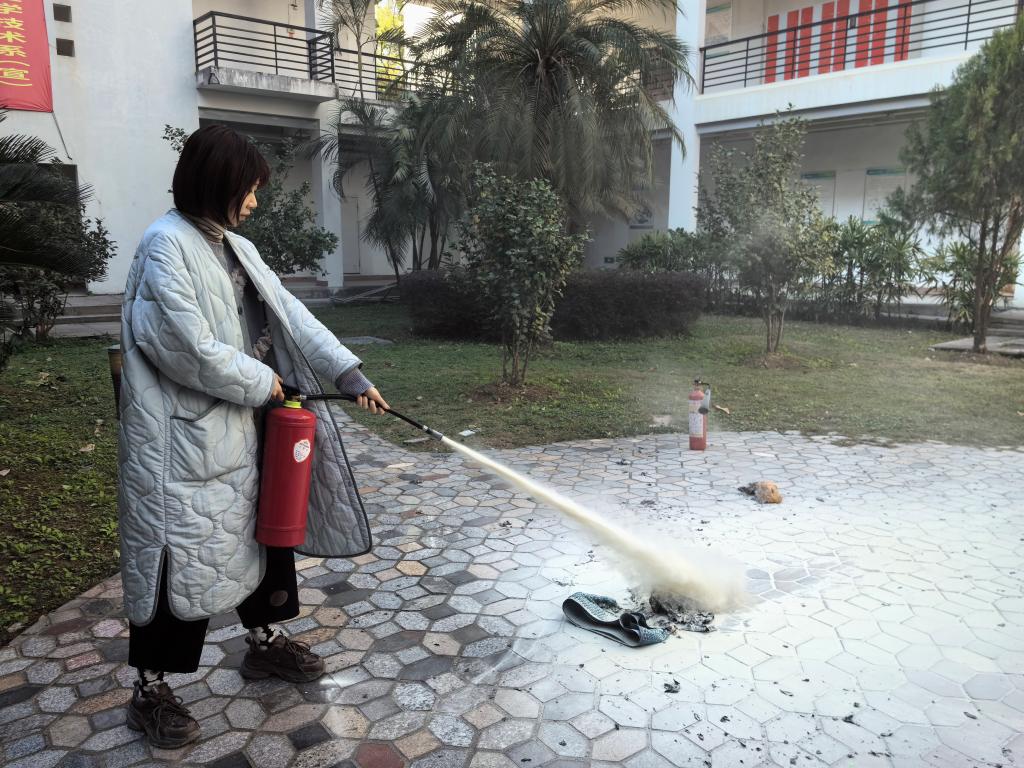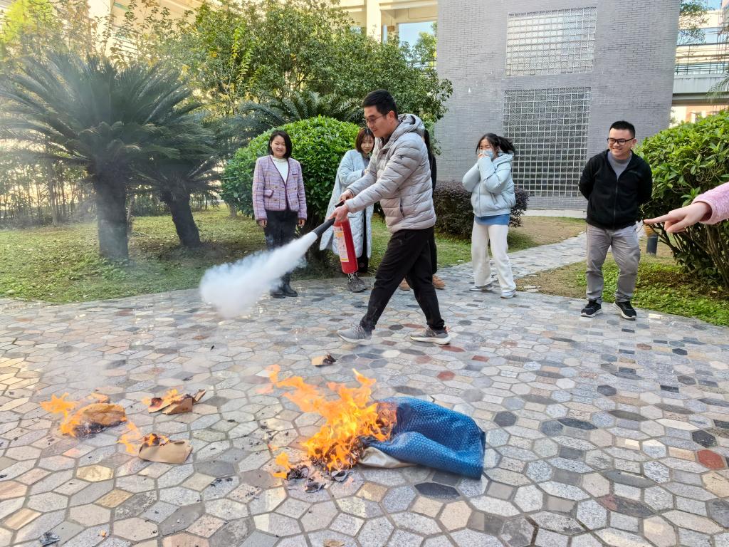 講座結(jié)束后,吳香書(shū)老師帶領(lǐng)2023年新入職的4位教師,以及2022年入職的3位教師開(kāi)展滅火器和消防栓的使用培訓(xùn)。