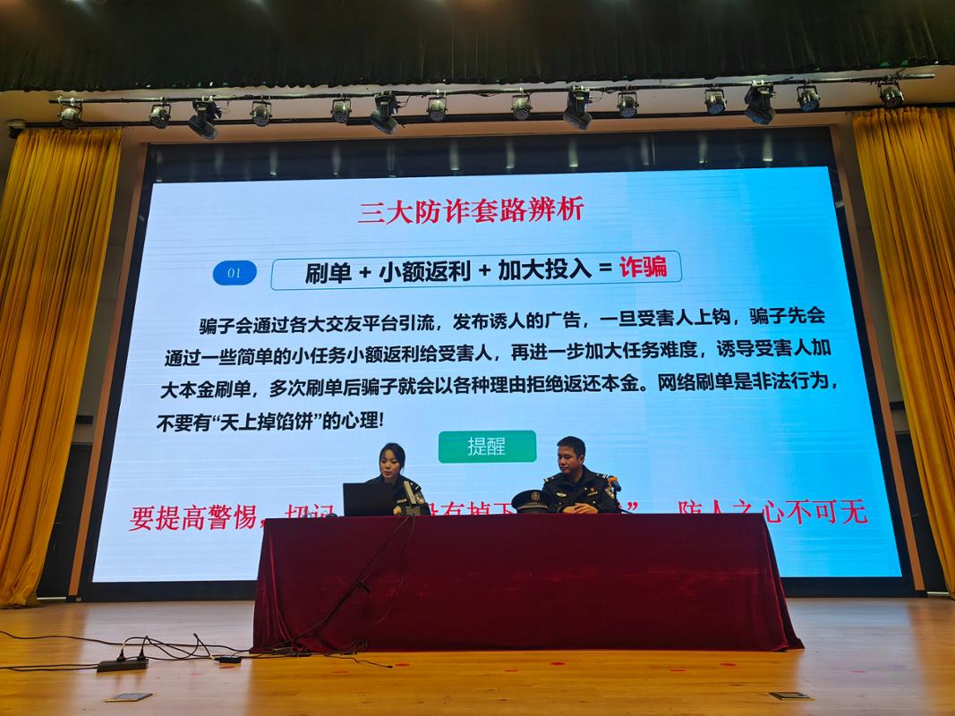 本次講座圍繞三個(gè)方面展開,一是結(jié)合案例詳細(xì)介紹了電信網(wǎng)絡(luò)詐騙慣用的手段、途徑,分析了受害人的心理活動和思維邏輯,提醒各位同學(xué)要提高警惕,不輕信來歷不明的電話、信息;對詐騙人的花言巧語、危言恐嚇“不聽信、不轉(zhuǎn)賬、不匯款”;遇到可疑情況及時(shí)撥打報(bào)警電話,謹(jǐn)防上當(dāng)受騙。二是提醒學(xué)生不要為貪圖小利對外出租、出售、出借銀行卡、電話卡及各種互聯(lián)網(wǎng)賬號,保護(hù)好個(gè)人信息,避免成為電信網(wǎng)絡(luò)詐騙犯罪活動的“工具人”。三是總結(jié)防范“電信詐騙” 牢記十個(gè)“凡是”,提高學(xué)生防詐騙的意識。