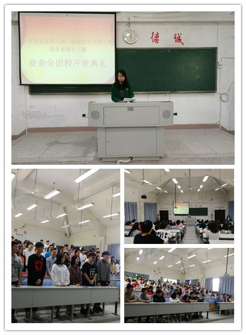 為深入貫徹落實習(xí)近平總書記系列重要講話精神,切實加強和改進(jìn)高校共青團(tuán)各項工作和建設(shè),2018年4月19日,我系于醫(yī)學(xué)技術(shù)系二階召開藥學(xué)系、醫(yī)學(xué)技術(shù)系及臨床醫(yī)學(xué)系三系聯(lián)辦的業(yè)余團(tuán)校開班典禮,蒞臨本次典禮的老師有:藥學(xué)系團(tuán)總支書記黃嵩梅老師、藥學(xué)系團(tuán)總支副書記尹德愛老師、醫(yī)學(xué)技術(shù)系團(tuán)總支書記黃玲云老師、醫(yī)學(xué)技術(shù)系團(tuán)總支副書記曾慶才老師、臨床醫(yī)學(xué)系團(tuán)總支書記葉家濤老師、臨床醫(yī)學(xué)系團(tuán)總支副書記謝林輝老師。參加此次團(tuán)校的學(xué)員共九十余人,藥學(xué)系參加團(tuán)校學(xué)習(xí)共三十七人。