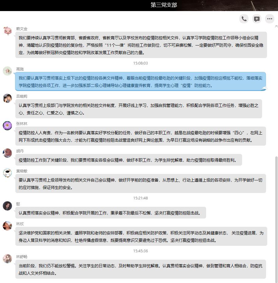 通過本次集中學(xué)習(xí),支部全體黨員面對疫情的站位進(jìn)一步提高、覺悟進(jìn)一步提升,全體師生黨員普遍認(rèn)為,在疫情緊要關(guān)口更要咬緊牙關(guān),認(rèn)清疫情防控的復(fù)雜性與嚴(yán)肅性,立足本職、嚴(yán)防死守、做好“11個(gè)一律”,確保校園安全穩(wěn)定,為統(tǒng)籌新冠肺炎疫情防控和學(xué)院改革發(fā)展貢獻(xiàn)自己的力量。