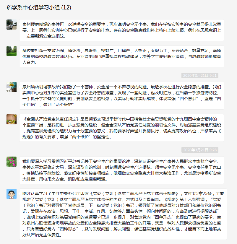 2020年3月21日,藥學(xué)系黨總支在微信群召開中心組學(xué)習(xí)(擴(kuò)大)會(huì)議,會(huì)議由藥學(xué)系黨總支書記鄭力宏主持。