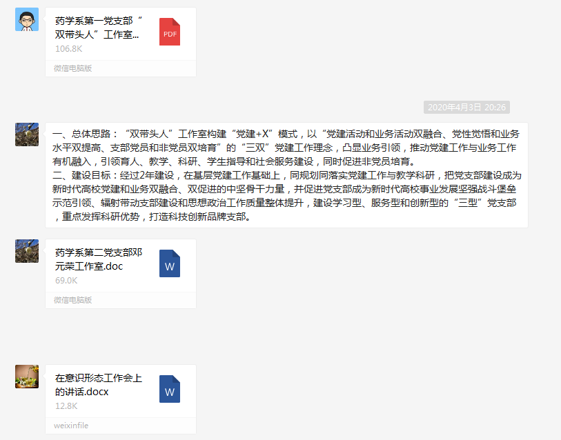 2020年4月3日,藥學(xué)系黨總支在微信群召開2020年第一季度意識(shí)形態(tài)工作會(huì)議暨3月份支部書記例會(huì),藥學(xué)系黨總支書記鄭力宏、副主任(主持工作)肖健、黨總支副書記賴文金、總支委員、各支部書記、實(shí)訓(xùn)中心主任參加會(huì)議,會(huì)議由黨總支書記鄭力宏主持。