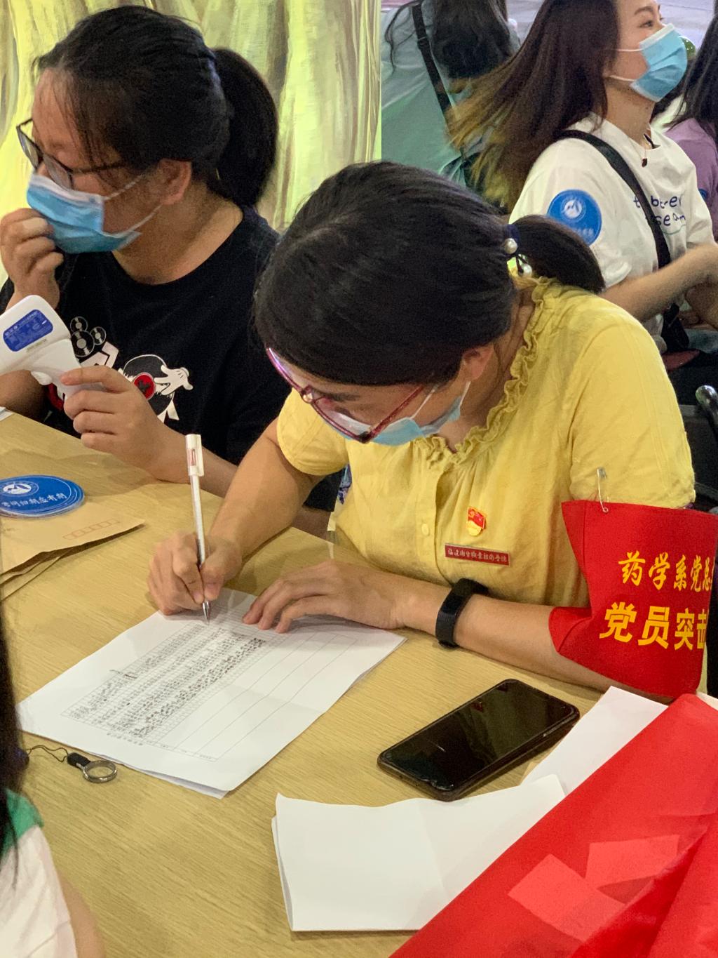 2020年6月7日,藥學系迎來疫情防控期間的首批返校復學學生。為確保學生順利返校,藥學系黨總支從黨員突擊隊中抽調11名優(yōu)秀黨員分赴福州火車站與福州火車南站,承擔接站與護送。登信息,測體溫,臂上鮮紅的袖章,胸前閃亮的徽章,和風細雨卻又不失嚴謹?shù)膽B(tài)度,略顯疲憊卻又依然堅毅的面龐,無不彰顯著藥學系黨員突擊隊的風采與擔當。