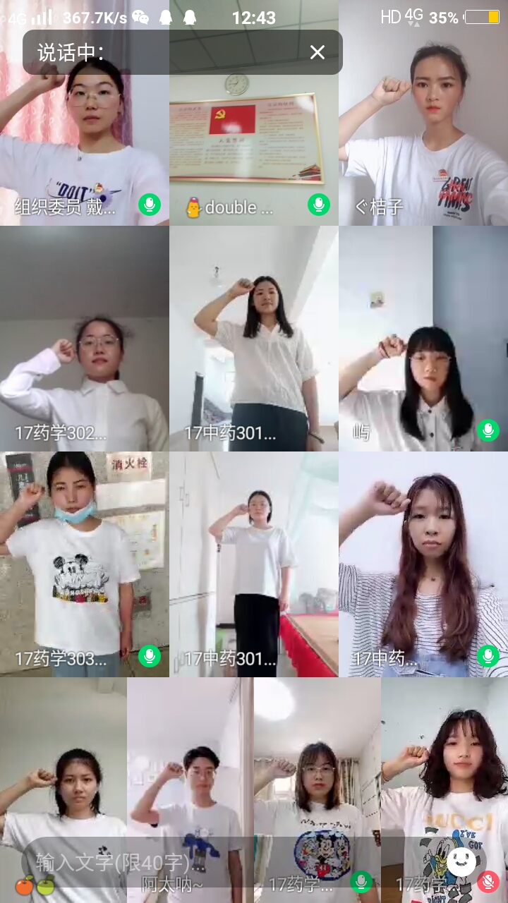 2020年6月15日,藥學系黨總支在系部會議室、QQ平臺舉行新黨員線上入黨宣誓儀式,藥學系黨總支書記鄭力宏、副書記賴文金、支部支委及2019年下半年新發(fā)展黨員一起參加了線上入黨宣誓儀式,儀式由鄭力宏書記主持。