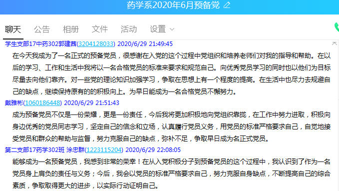 6月29日,藥學(xué)系各黨支部組織召開線上支部黨員大會,討論接收13位師生黨員發(fā)展對象為中共預(yù)備黨員。經(jīng)宣讀入黨志愿書、入黨培養(yǎng)人介紹發(fā)展對象情況、對發(fā)展對象進(jìn)行評議、投票表決等環(huán)節(jié),13 位同志順利通過黨組織審核,成為中共預(yù)備黨員。會上,新發(fā)展的預(yù)備黨員們紛紛發(fā)表入黨感言,表明入黨決心。