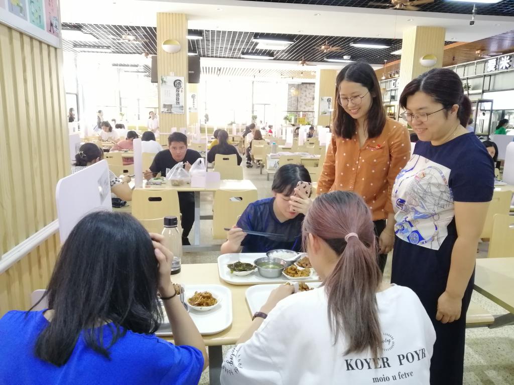 在支部書記鄧元榮同志的倡議下,支部黨員以實際行動響應(yīng)號召,午餐期間,分組前往學(xué)院各個食堂開展文明督導(dǎo)。葉雅沁、丁藝蘭等同志來到第一餐廳為光盤的同學(xué)點贊,對浪費的行為進行督促,引導(dǎo)學(xué)生厲行節(jié)約,杜絕舌尖上的浪費;李泳寧、朱宏陽與唐小巒同志前往明湖餐廳,倡導(dǎo)同學(xué)們“打飯打菜要適量,盤中飯菜要吃光,從我做起?!?/span>