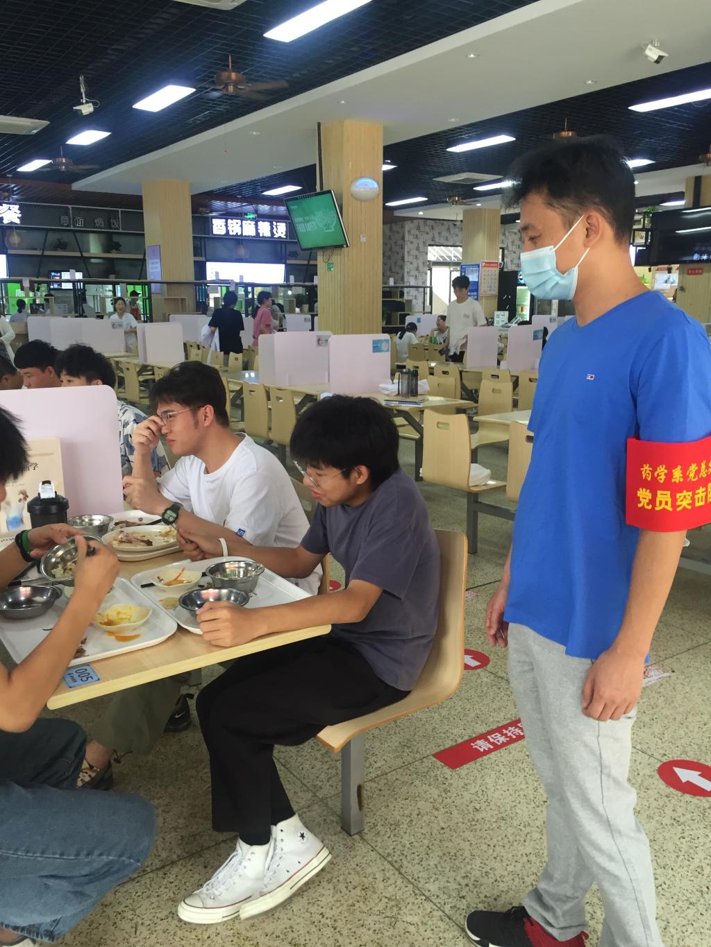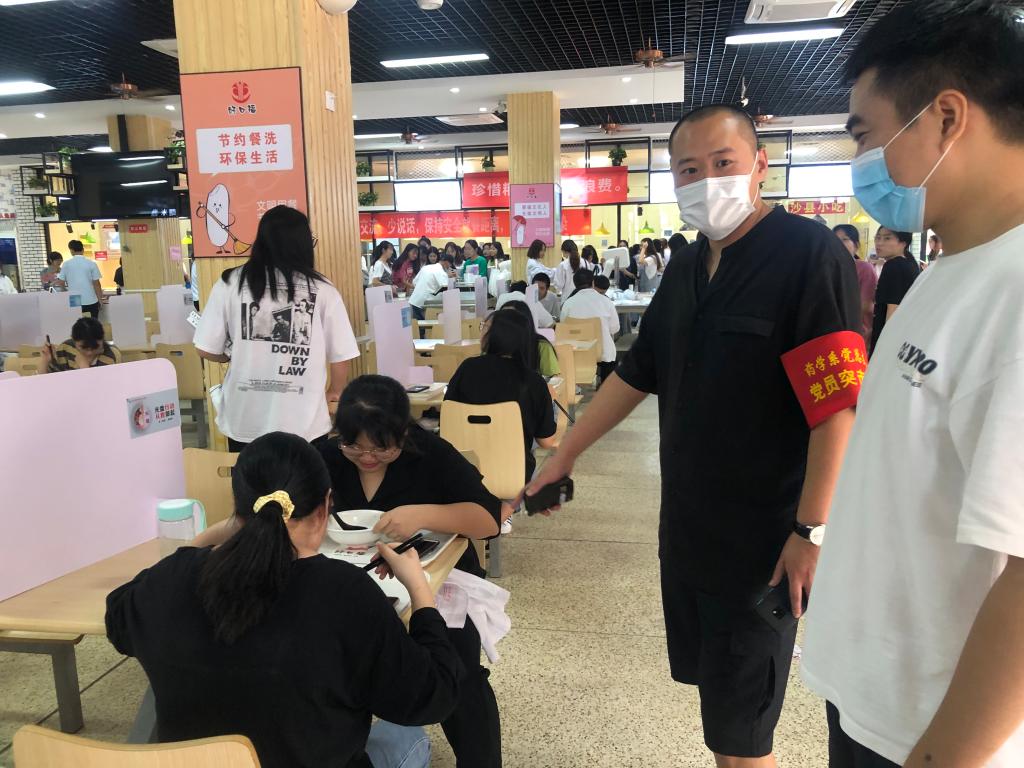 9月23日中午,支部陳翰書記帶領(lǐng)支部黨員前往第一食堂關(guān)心學(xué)生就餐情況、營造厲行節(jié)約風(fēng)尚、弘揚(yáng)艱苦樸素精神,支部黨員走近學(xué)生、走進(jìn)學(xué)生,監(jiān)督學(xué)生浪費(fèi)行為、培養(yǎng)學(xué)生節(jié)約習(xí)慣。