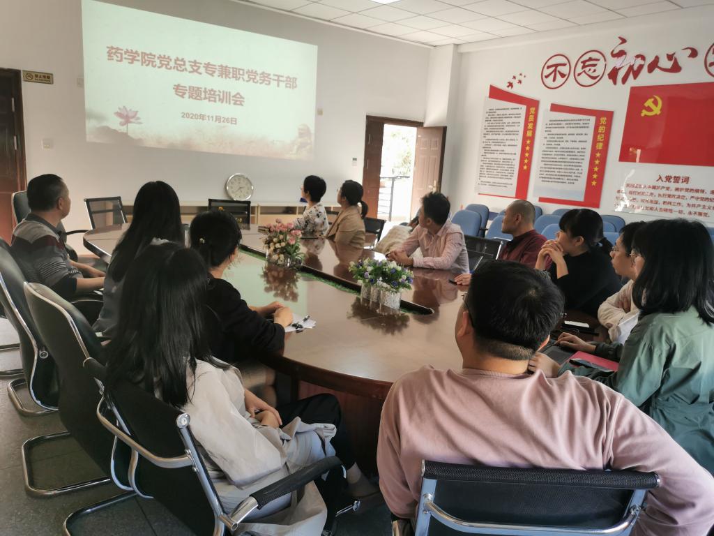 2020年11月27日,藥學(xué)院黨總支組織全體專兼職黨務(wù)干部在會(huì)議室開(kāi)展專題培訓(xùn)會(huì),集中學(xué)習(xí)《中國(guó)共產(chǎn)黨基層組織選舉工作條例》。會(huì)議由總支書記鄭力宏主持。