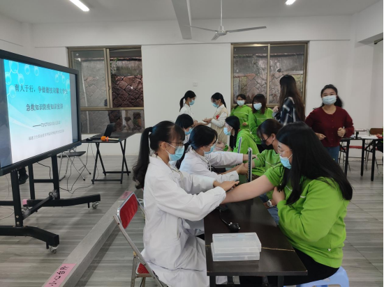 藥學(xué)院學(xué)生黨支部發(fā)揮支部黨員、積極分子及團(tuán)學(xué)干部的自身優(yōu)勢(shì),將此次黨日活動(dòng)分成“急救知識(shí)宣傳”“安全防疫宣傳”“健康義診服務(wù)”三個(gè)部分,為73127部隊(duì)幼兒園的教職工進(jìn)行急救知識(shí)的宣傳和指導(dǎo),增強(qiáng)了幼兒園教職工的急救能力,并向幼兒園大班的小朋友們講解了防范新冠肺炎的措施,增強(qiáng)了幼兒園小朋友的防疫意識(shí)。此外,藥學(xué)院學(xué)生黨支部還為幼兒園教職工提供測(cè)量血壓、血糖和推拿理療等健康義診服務(wù),并向73127部隊(duì)幼兒園的師生們送上自制的防疫香囊,以及口罩、洗手液等防疫物資,共同助力疫情防控。