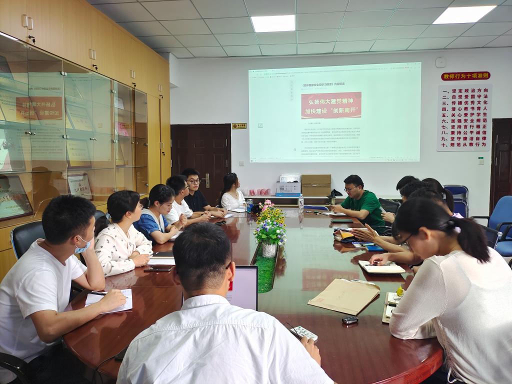 學(xué)生第一黨支部書記鄭衛(wèi)敏帶領(lǐng)學(xué)生支部全體黨員集體學(xué)習(xí)《總體國家安全觀學(xué)習(xí)綱要》,深刻理解總書記總體國家安全觀提出的歷史背景及現(xiàn)實(shí)意義,增強(qiáng)了全體支部黨員的國家安全意識(shí)。