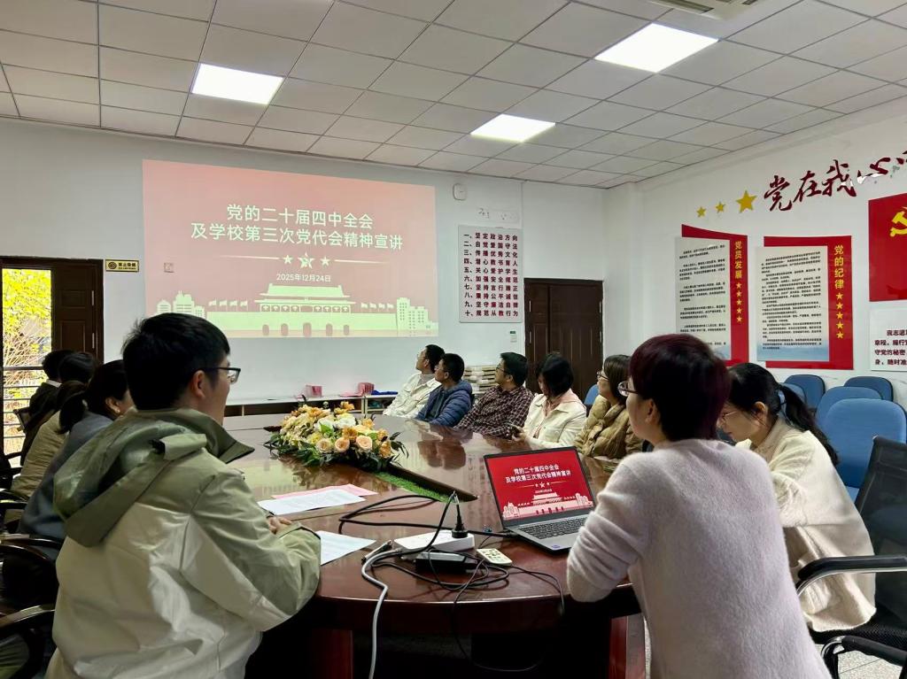 為深入學(xué)習(xí)貫徹黨的二十屆四中全會(huì)及學(xué)校第三次黨代會(huì)精神,切實(shí)把全體黨員的思想和行動(dòng)統(tǒng)一到黨中央決策部署及學(xué)校發(fā)展規(guī)劃上來,2025年12月24日,藥學(xué)院第二黨支部開展黨的二十屆四中全會(huì)精神及學(xué)校第三次黨代會(huì)精神專題黨課。本次會(huì)議由黨支部書記劉全裕同志主持,支部教師黨員積極參與。