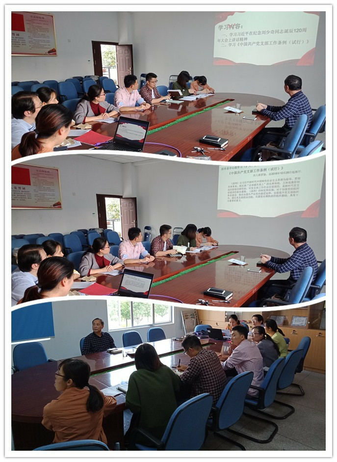12月6日,藥學(xué)系黨總支中心組學(xué)習(xí)(擴(kuò)大)會議在系會議室召開。藥學(xué)系領(lǐng)導(dǎo)班子成員、總支委員、支部書記等參加學(xué)習(xí)會,會議由總支副書記陳潔主持。 會議集中學(xué)習(xí)《中國共產(chǎn)黨支部工作條例(試行)》及習(xí)近平總書記在紀(jì)念劉少奇同志誕辰120周年大會上的重要講話精神。 鄭力宏書記指出黨支部是黨的基礎(chǔ)組織,是黨的工作和戰(zhàn)斗力的基礎(chǔ),擔(dān)負(fù)直接教育黨員、管理黨員、監(jiān)督黨員和組織群眾、宣傳群眾、凝聚群眾、服務(wù)群眾的職責(zé),我們要以習(xí)近平新時代中國特色社會主義思想為指導(dǎo),遵循支部建設(shè)標(biāo)準(zhǔn)化、規(guī)范化要求,規(guī)范支部各項工作,帶領(lǐng)全體黨員牢固樹立政治意識、大局意識、核心意識、看齊意識,不斷提高藥學(xué)系三個黨支部建設(shè)質(zhì)量。
