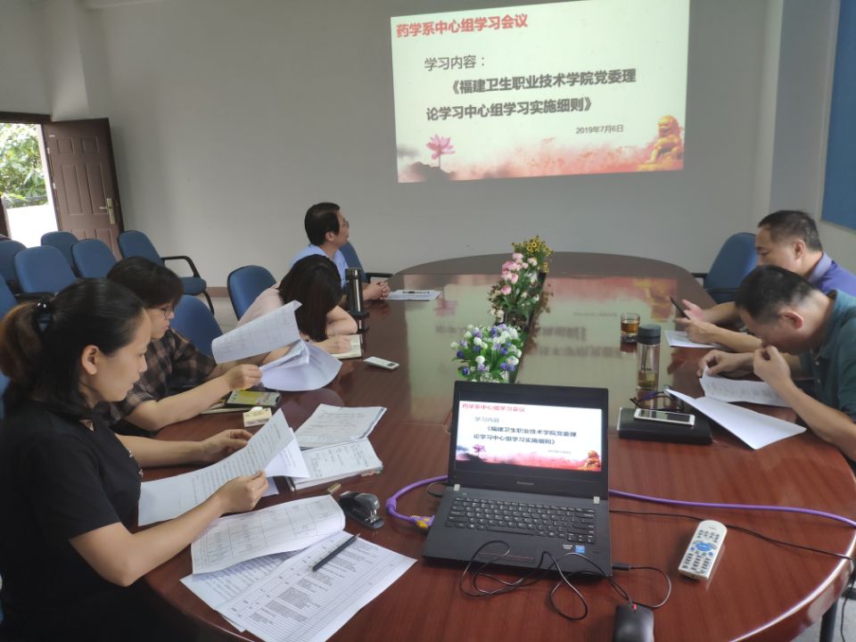 2019年7月6日,藥學(xué)系中心組(擴(kuò)大)于會議室學(xué)習(xí)《福建衛(wèi)生職業(yè)技術(shù)學(xué)院黨委理論學(xué)習(xí)中心組學(xué)習(xí)實(shí)施細(xì)則》(以下簡稱“細(xì)則”),會議由藥學(xué)系黨總支鄭力宏書記主持。