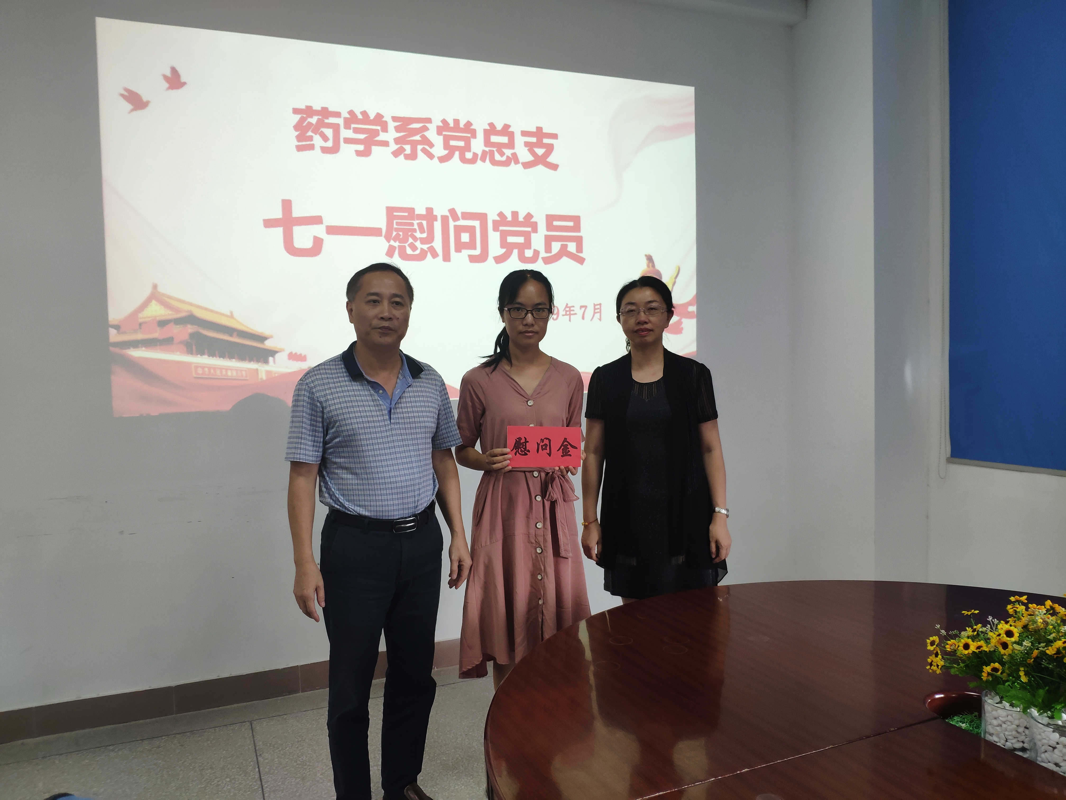 在歡慶中國(guó)共產(chǎn)黨成立98周年之際,為弘揚(yáng)黨的光榮傳統(tǒng)和優(yōu)良作風(fēng),充分體現(xiàn)黨組織對(duì)黨員的關(guān)心與愛(ài)護(hù),藥學(xué)系黨總支開(kāi)展七一慰問(wèn)活動(dòng),看望困難黨員,為他們送去慰問(wèn)金及節(jié)日的問(wèn)候。