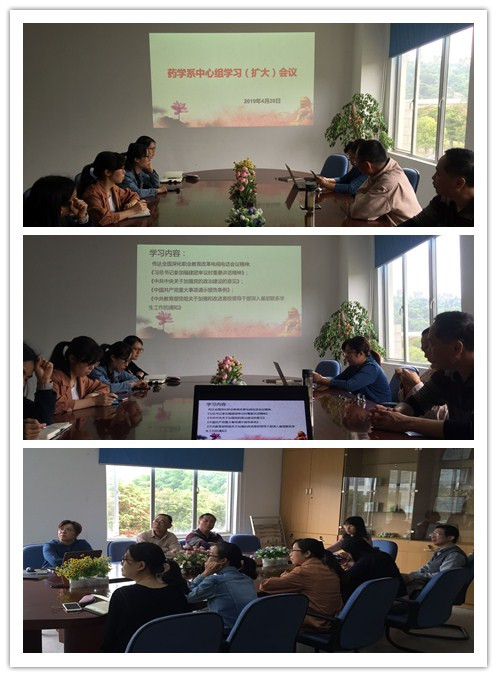 4月28日,藥學(xué)系在系部會議室召開中心組學(xué)習(xí)(擴大)會議,傳達全國深化職業(yè)教育改革電視電話會議精神,組織學(xué)習(xí)《習(xí)近平總書記參加福建團審議時重要講話精神》、《中共中央關(guān)于加強黨的政治建設(shè)的意見》、《中國共產(chǎn)黨重大事項請示報告條例》、《中共教育部黨組關(guān)于加強和改進高校領(lǐng)導(dǎo)干部深入基層聯(lián)系學(xué)生工作的通知》等文件,會議由系黨總支鄭力宏書記主持。