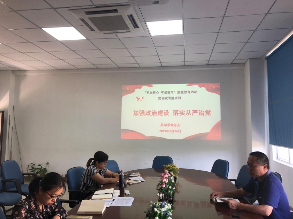 9月24日上午,藥學(xué)系黨總支在系部會議室開展主題為“加強政治建設(shè),落實全面從嚴(yán)治黨”專題學(xué)習(xí)研討交流會。藥學(xué)系黨總支書記鄭力宏主持會議,黨總支副書記賴文金、系副主任潘雪豐參加了本次研討交流會。