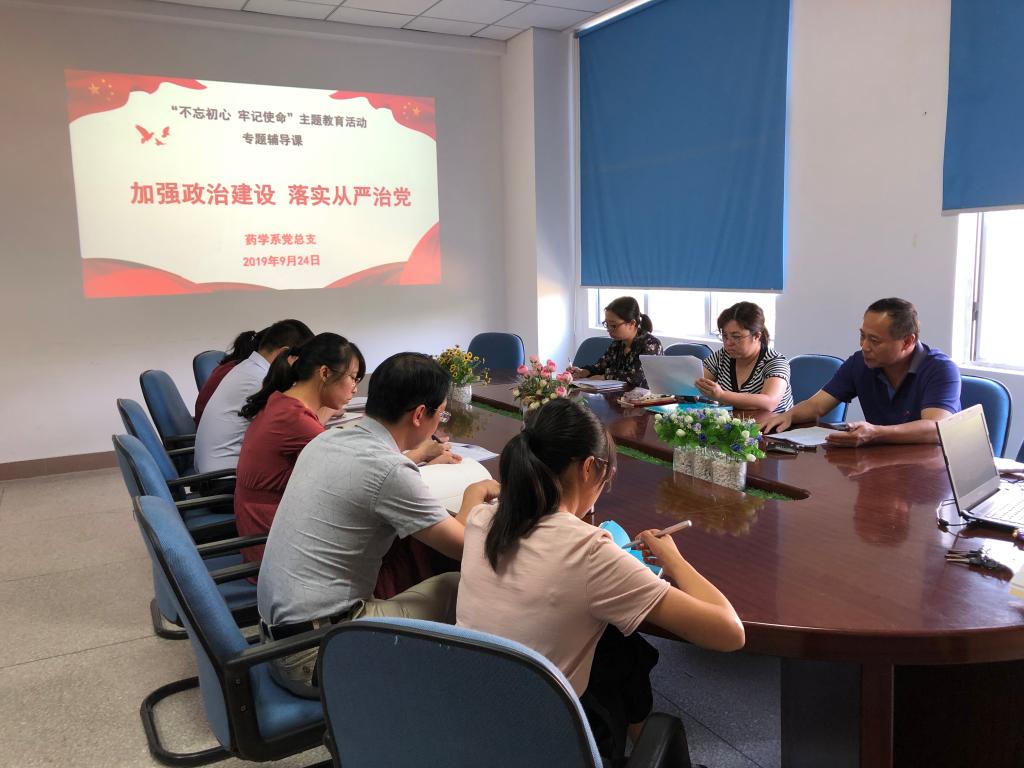 9月24日下午,藥學(xué)系黨總支在系部會議室開展第五次主題教育專題研討會暨 “加強雙帶頭人建設(shè),提高黨支部戰(zhàn)斗力”專題輔導(dǎo)課。藥學(xué)系黨總支書記鄭力宏主持會議,黨總支委員、支部書記參加了本次研討交流會。