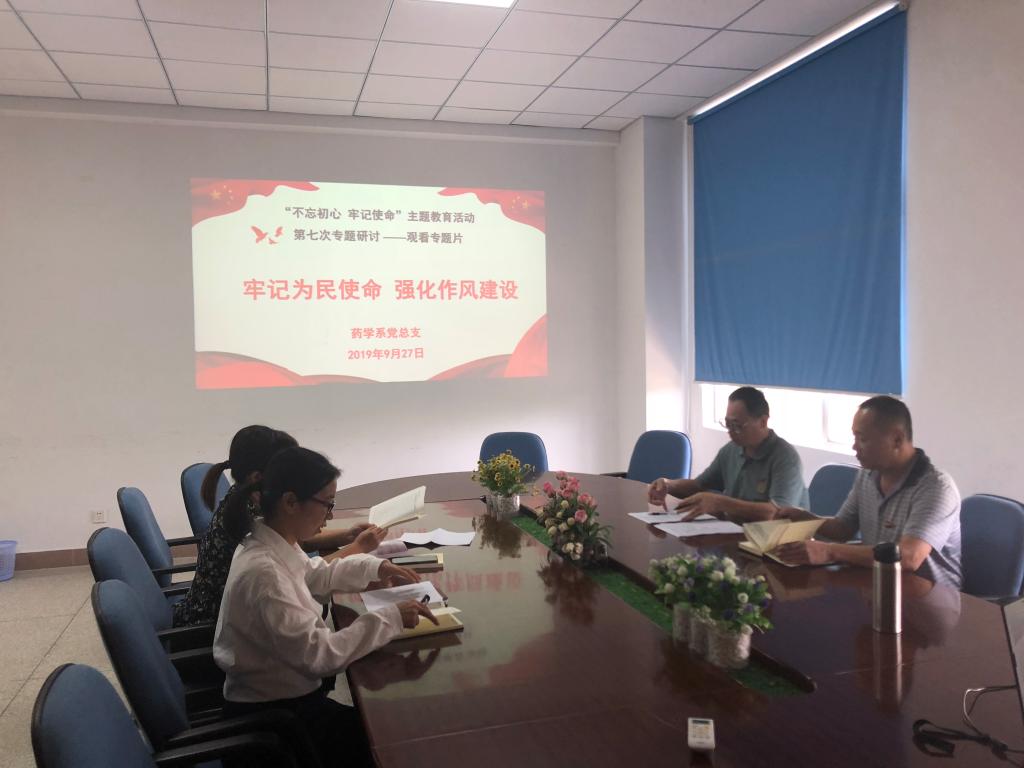 9月27日下午,藥學(xué)系黨總支在系部會(huì)議室開展主題為“牢記為民使命,強(qiáng)化作風(fēng)建設(shè)”專題學(xué)習(xí)研討交流會(huì)。藥學(xué)系黨總支書記鄭力宏同志主持會(huì)議,藥學(xué)系副主任肖?。ㄖ鞒止ぷ鳎?、黨總支副書記賴文金、系副主任潘雪豐參加了本次研討交流會(huì)。會(huì)上,大家共同觀看了紀(jì)錄片《習(xí)近平治國(guó)方略 中國(guó)這五年》第一集“人民情懷”、第二集“大國(guó)治理”。