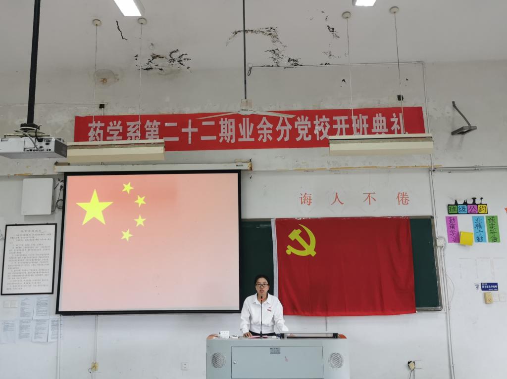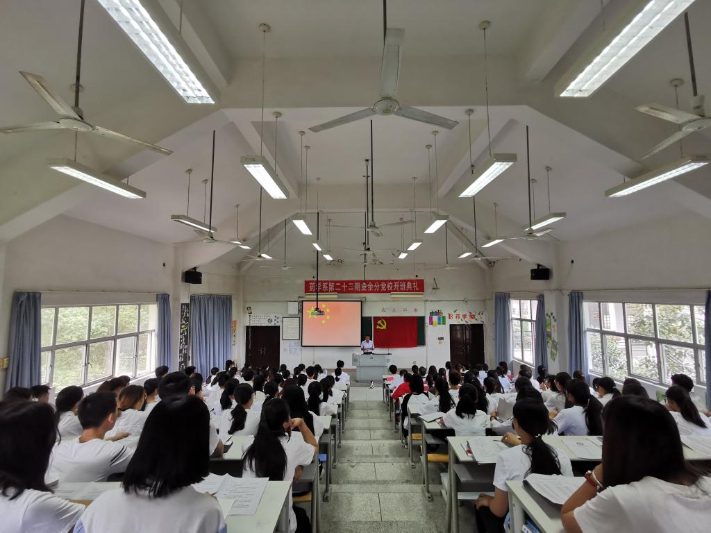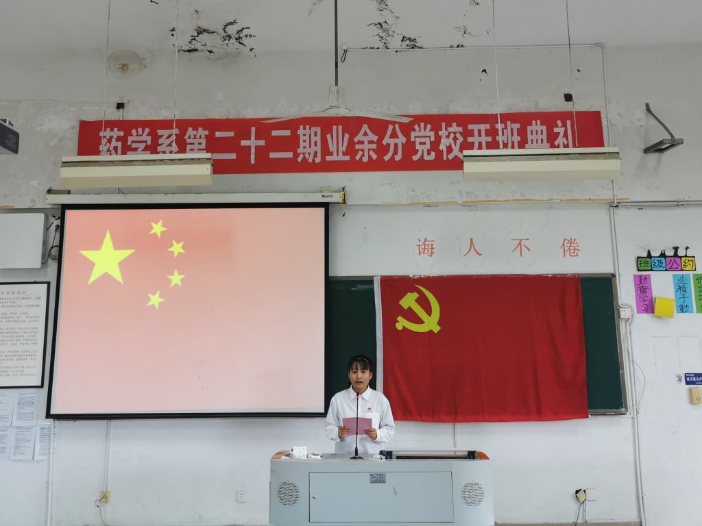 開班儀式在莊嚴(yán)的國(guó)歌中拉開序幕。會(huì)議伊始,藥學(xué)系黨總支副書記賴文金宣布本期業(yè)余分黨校學(xué)員名單。18中藥學(xué)301班李柳柳同學(xué)代表全體學(xué)員發(fā)言,表示將以飽滿的熱情和實(shí)際行動(dòng)完成好黨校學(xué)習(xí)任務(wù),自覺遵守黨校紀(jì)律和制度,認(rèn)真完成學(xué)習(xí),在黨校結(jié)業(yè)考試中努力向黨組織交一份滿意的答卷。培訓(xùn)期間不斷強(qiáng)化思想覺悟,提高黨性修養(yǎng),增強(qiáng)勇于擔(dān)當(dāng)?shù)呢?zé)任意識(shí),將深厚的愛國(guó)情懷融入到刻苦學(xué)習(xí)和努力奮斗的實(shí)踐中。藥學(xué)系關(guān)工委常務(wù)副主任歐春木在致辭中對(duì)參加本次黨校學(xué)習(xí)的學(xué)員表示祝賀,并提出了幾點(diǎn)要求:他指出參加黨校學(xué)習(xí)不僅是一份榮譽(yù),也是展示同學(xué)們精神風(fēng)貌的一扇窗口,更是一份沉甸甸的責(zé)任;希望全體學(xué)員要珍惜學(xué)習(xí)機(jī)會(huì),認(rèn)真學(xué)習(xí)黨的基本理論與基礎(chǔ)知識(shí),加強(qiáng)黨性修養(yǎng),從思想上提升對(duì)黨組織的認(rèn)同感、歸屬感,堅(jiān)定不移跟黨走,用實(shí)際行動(dòng)向黨組織靠攏。