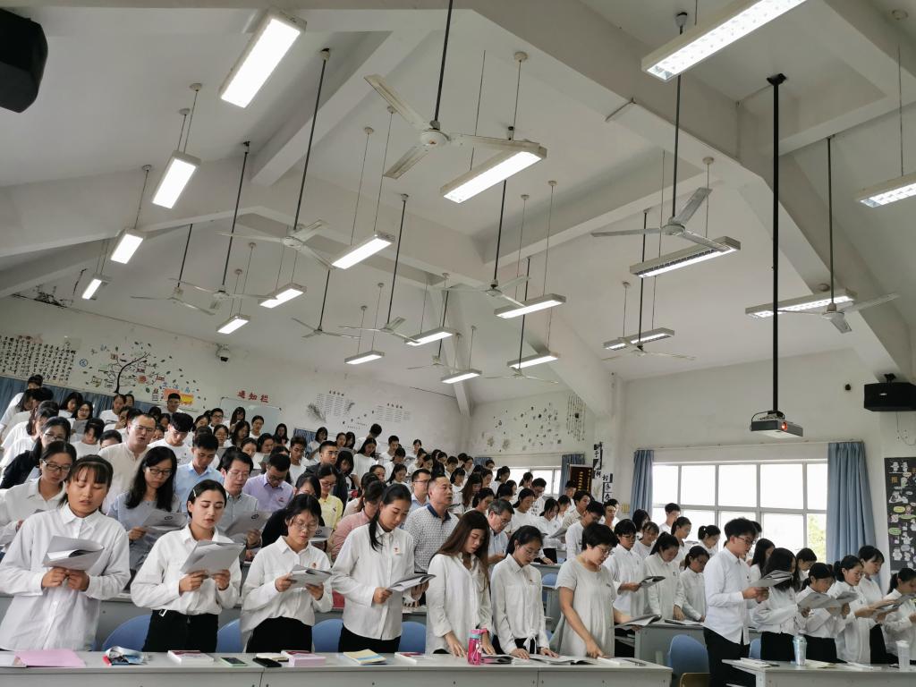 不忘初心跟黨走,牢記使命強(qiáng)黨性,2019年10月15日,藥學(xué)系黨總支于藥二階召開第二十二期業(yè)余分黨校開班儀式。藥學(xué)系關(guān)工委常務(wù)副主任歐春木、黨總支書記鄭力宏、黨總支副書記賴文金、副主任潘雪豐、黨總支專職組織員黃嵩梅、黨總支委員葉雅沁、支部書記、全體輔導(dǎo)員及分黨校99名學(xué)員到場(chǎng)參會(huì)。