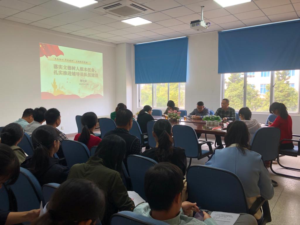 系黨總支副書記賴文金圍繞“落實(shí)立德樹人根本任務(wù),扎實(shí)推進(jìn)輔導(dǎo)員隊(duì)伍建設(shè)”這一主題開展黨課,,結(jié)合前期調(diào)研,論述“充分認(rèn)識輔導(dǎo)員工作的重要意義”、“輔導(dǎo)員隊(duì)伍建設(shè)存在的主要問題及原因分析”、“加強(qiáng)和改進(jìn)輔導(dǎo)員隊(duì)伍建設(shè)的思路和措施”三方面內(nèi)容,她表示輔導(dǎo)員工作使命光榮、責(zé)任重大,是一項(xiàng)用心靈陪伴心靈的事業(yè),是一項(xiàng)用青春點(diǎn)燃青春、照亮夢想的事業(yè),希望輔導(dǎo)員隊(duì)伍能以主題教育為契機(jī),在學(xué)生管理過程中能夠真正做到六要:底子要清,情況要明,困難要幫,矛盾要解,情緒要順(做好問題學(xué)生的心理疏導(dǎo)),環(huán)境要好(為學(xué)生提供寬松的學(xué)習(xí)環(huán)境),能夠不負(fù)重托、不辱使命,腳踏實(shí)地、開拓創(chuàng)新,真正落實(shí)好立德樹人任務(wù)。