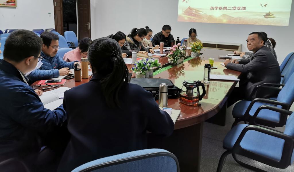 2019年12月5日,藥學系第二黨支部在藥學系會議室召開“不忘初心、牢記使命”專題組織生活會暨黨員民主評議會。學院紀委書記游鋒蒞臨指導,會議由黨支部書記鄧元榮主持。