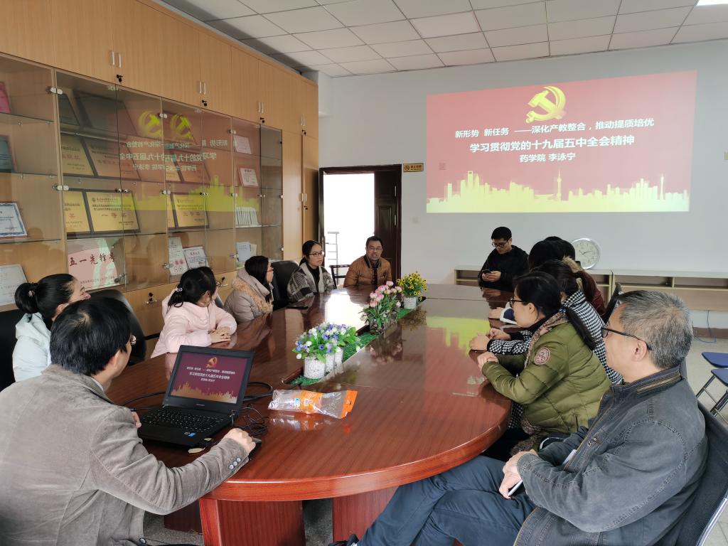 為進(jìn)一步深入學(xué)習(xí)貫徹黨的十九屆五中全會精神,學(xué)習(xí)領(lǐng)會福建省有關(guān)職業(yè)教育高質(zhì)量發(fā)展政策文件, 2020年12月24日藥學(xué)院副院長李泳寧以“學(xué)習(xí)貫徹黨的十九屆五中全會精神”為主題,以“深化產(chǎn)教整合 推動提質(zhì)培優(yōu)”為切入點(diǎn)為藥學(xué)院第二黨支部全體黨員上了一堂深刻的黨課。