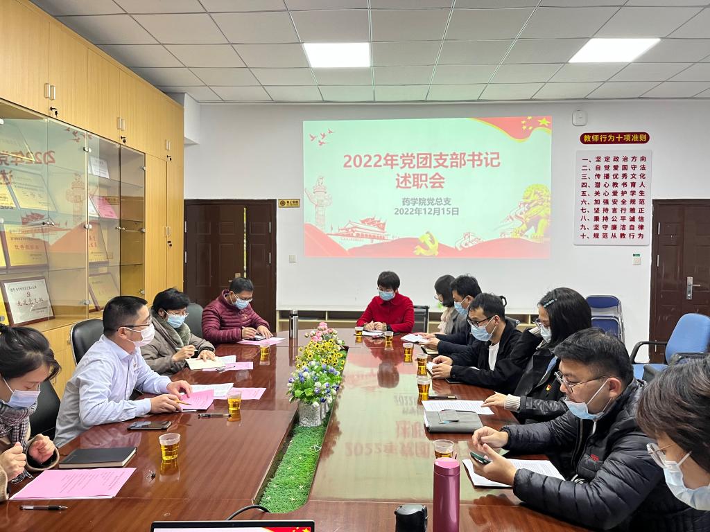 2022年12月15日,藥學(xué)院黨總支在207會(huì)議室組織召開2022年度黨支部書記、團(tuán)支部書記述職會(huì),校組織統(tǒng)戰(zhàn)部部長(zhǎng)謝濤列席指導(dǎo),藥學(xué)院各總支委員、支部書記、團(tuán)總支書記到場(chǎng)參會(huì),會(huì)議由黨總支書記林穎峰主持。