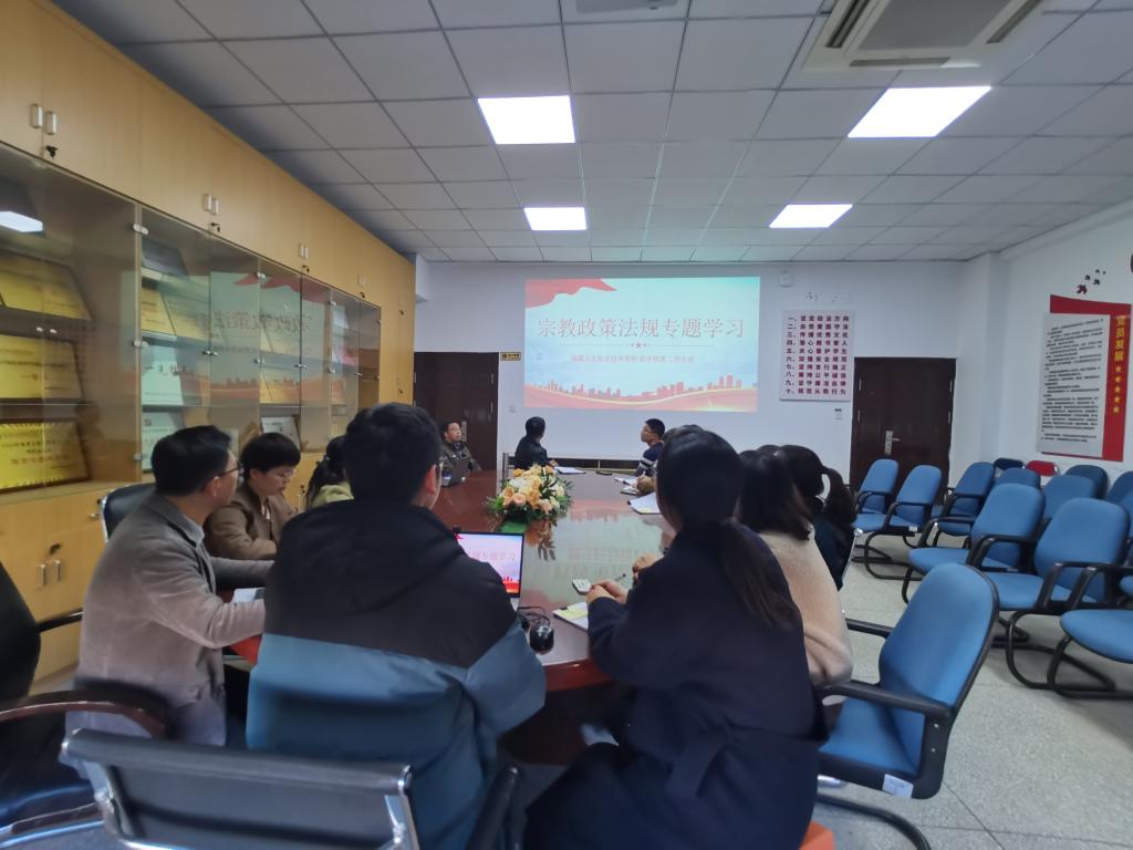 為深入學(xué)習(xí)貫徹黨的二十大精神,加強(qiáng)民族宗教政策法規(guī)學(xué)習(xí)宣傳,2023年11月15日,藥學(xué)院第二黨支部在藥學(xué)院會(huì)議室開展了《宗教政策知識(shí)宣傳》的專題學(xué)習(xí)。此次專題學(xué)習(xí)由支部副書記劉全裕主持。