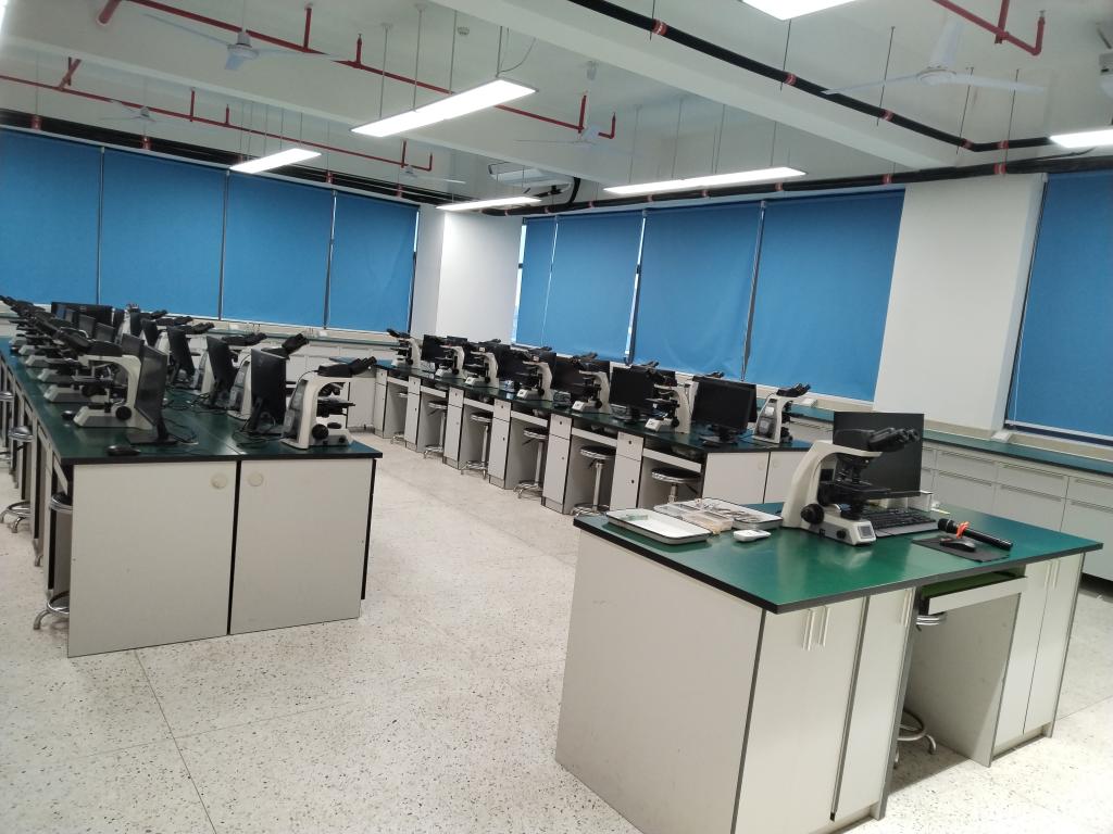 顯微數(shù)碼互動實訓室始包含兩間實訓室,占地面積186平方米,設(shè)備資產(chǎn)總值112萬,主要由顯微數(shù)碼互動控制端及顯微數(shù)碼互動接收端組合而成。該實訓室主要承擔《天然藥物學基礎(chǔ)與應用》、《中藥鑒定技術(shù)》、《藥用植物學》等課程的實踐教學任務,其高清高倍數(shù)的顯微功能,可應用于各種粉末和植物組織的鑒定??刂贫伺c接收端的高效結(jié)合,便于學生與教師之間的互動,及時解決實踐教學過程中遇到的相關(guān)問題,能有效提高整個實訓課的教學課堂效果。